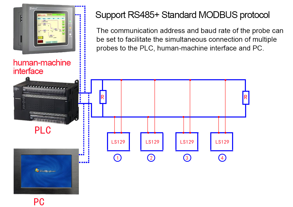 LS129 akıllı dijital prob, standart MODBUS protokolünü destekler. Varsayılan iletişim adresi "1"dir. Prob iletişim adresini "İnsan Makine Hata Ayıklama Aracı" veya iletişim protokolü aracılığıyla değiştirebilirsiniz. Adres ayar aralığı 1-247'dir.