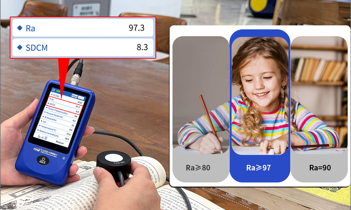 Aydınlatma, spektral eğri, renk sıcaklığı, renk geri verme endeksi, renk toleransı, flicker frekansı, dalgalanma derinliği, mavi ışık tehlike oranı, UV endeksi, sıcaklık ve nem gibi birden fazla parametreyi aynı anda ölçebilir, aydınlatma kaynağının özelliklerini kapsamlı bir şekilde değerlendirebilir. Her türlü ortamda kullanılabilir.