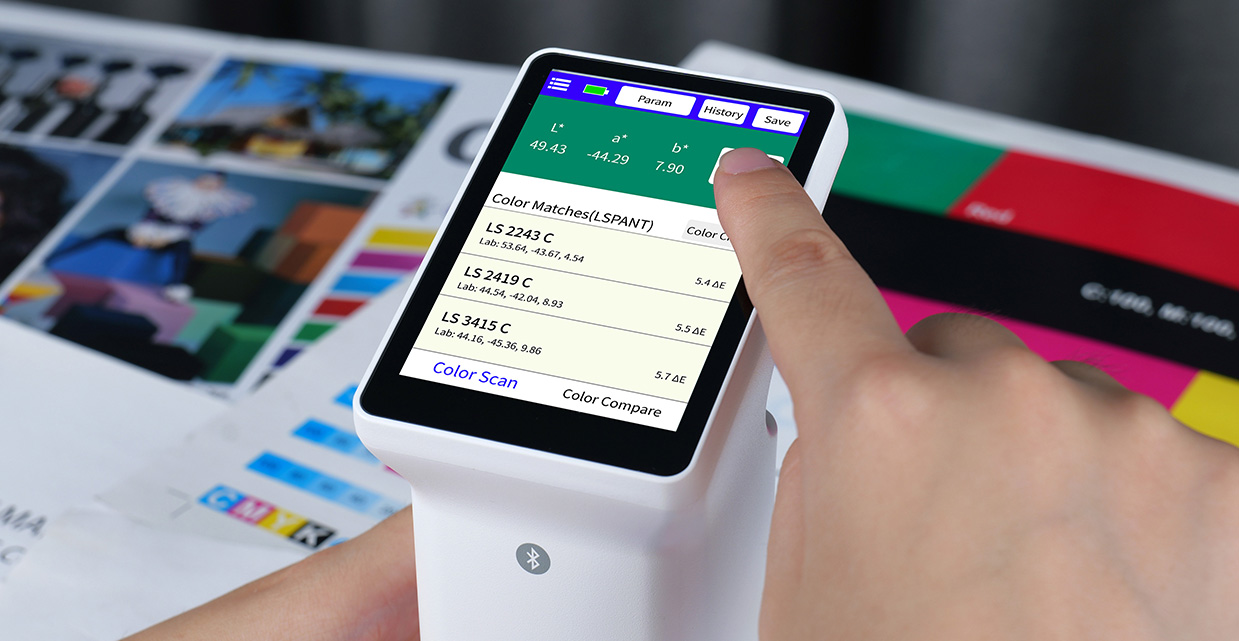 LS372, baskı endüstrisi için özel olarak tasarlanmış akıllı dokunmatik ekranlı bir renk ölçerdir. 3,5 inç IPS renkli kapasitif dokunmatik ekran kullanılarak üstün bir kullanım deneyimi sunar. Cihazın ölçüm açıklığı 4 mm olup, baskı renk ölçüm standartlarına uygun D50 standart ışık kaynağı ile donatılmıştır; bu sayede baskı ürünlerinin standart gözlem koşullarındaki renkleri doğru şekilde yeniden üretilir ve ölçüm sonuçları sektörel olarak daha yol gösterici olur. Cihazın içinde çok sayıda renk kartı entegre edilmiştir; en yakın örnek renk ile üç renk kartı numarasını hızlıca eşleştirebilir. Ayrıca renk farkı karşılaştırma özelliği, çeşitli standart renk ekleme yöntemleri, ayarlanabilir renk farkı eşik değeri, esnek renk farkı formülü seçimi ve QC hızlı ölçüm desteği sunar.