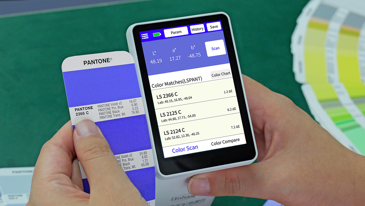 Çeşitli endüstri standart renk kartları entegre edilmiştir; ölçüm sırasında en yakın 3 renk kartı hızlıca eşleştirilebilir ve %90’dan fazla doğruluk sağlar. Baskı örneklemesi ve kalite kontrol için ideal bir araçtır.